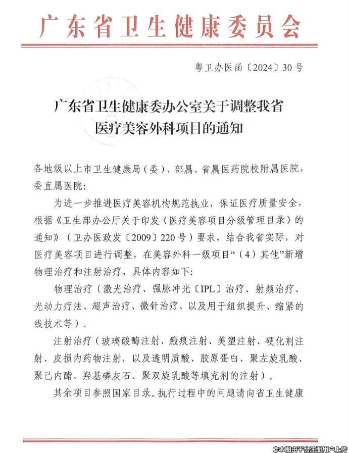 廣東省衛(wèi)生健康委辦公室關(guān)于調(diào)整我省醫(yī)療美容外科項目的通知