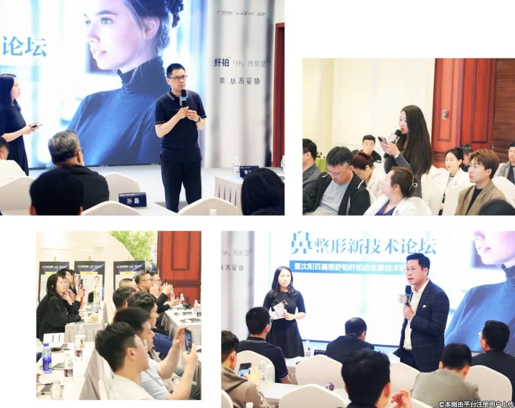 現(xiàn)場,中國醫(yī)師協(xié)會美容與整形醫(yī)師分會鼻整形學(xué)組委員曹海峰院長、百嘉麗眼鼻綜合整形與面部年輕化專家王濱福教授、舒鉑-纖鉑全國銷售總監(jiān)黃子杰先生分別圍繞《“纖鉑”在鼻尖整形中的應(yīng)用體會》、《舒鉑在鼻整形中的設(shè)計理念》、《舒鉑·纖鉑鼻尖材料的迭代應(yīng)用》課題展開深入的交流與研討。
