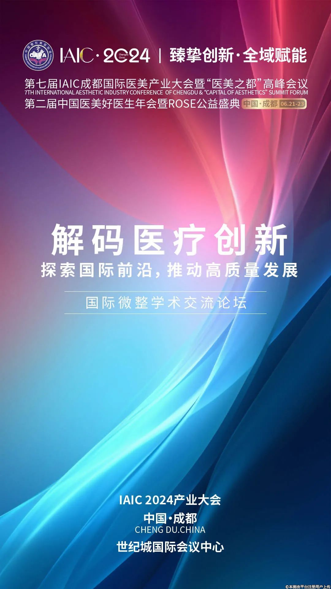 隨著醫(yī)美行業(yè)的蓬勃發(fā)展,全球?qū)ο冗M微整形技術(shù)和前端安全材料的關(guān)注日益升溫。2024年6月21日至23日,將盛大舉行第七屆IAIC(成都)國際醫(yī)美產(chǎn)業(yè)大會暨“醫(yī)美之都”高峰會議,以“傳遞市場信任、樹立品牌榜樣、助力科技與監(jiān)管創(chuàng)新、推動高質(zhì)量發(fā)展”為主題,促進美容醫(yī)學和微整形技術(shù)的創(chuàng)新與發(fā)展。
