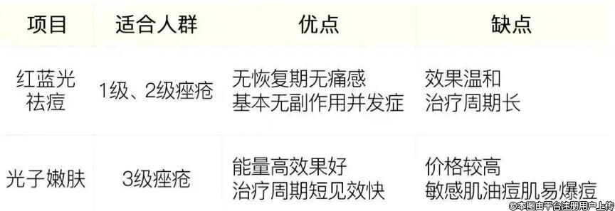 紅藍(lán)光治療周期長,適合治療輕中度(1級和2級)痤瘡。