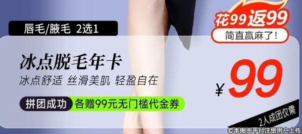無錫麗都冰點脫毛年卡來咯!2人拼團僅需99元