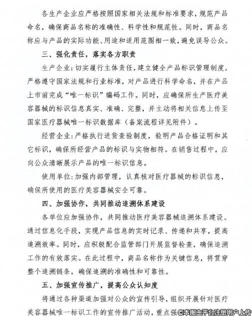 關(guān)于進一步推進醫(yī)療美容器械唯一標(biāo)識相關(guān)工作的通知