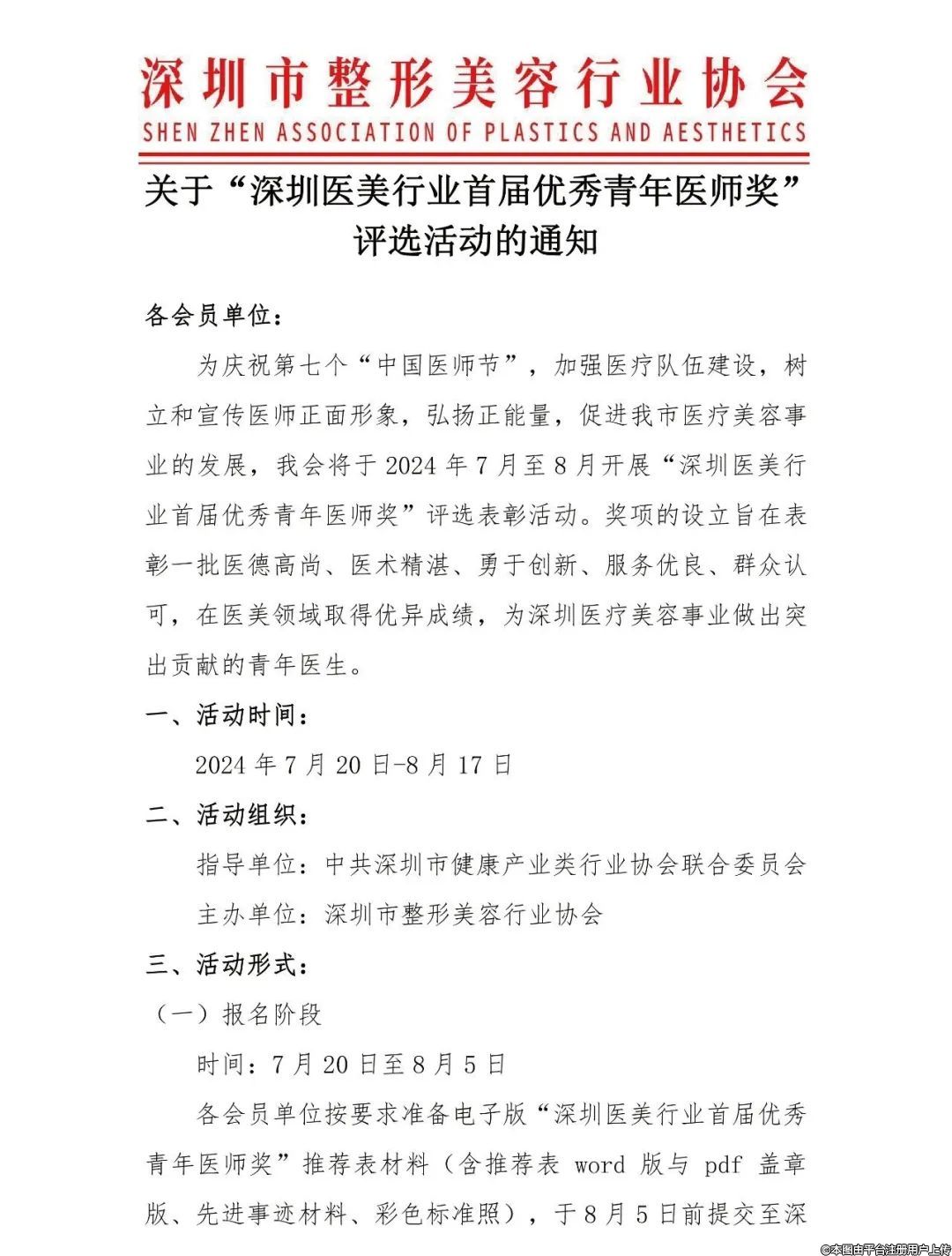 關(guān)于“深圳醫(yī)美行業(yè)首屆優(yōu)秀青年醫(yī)師獎(jiǎng)”評(píng)選活動(dòng)的通知