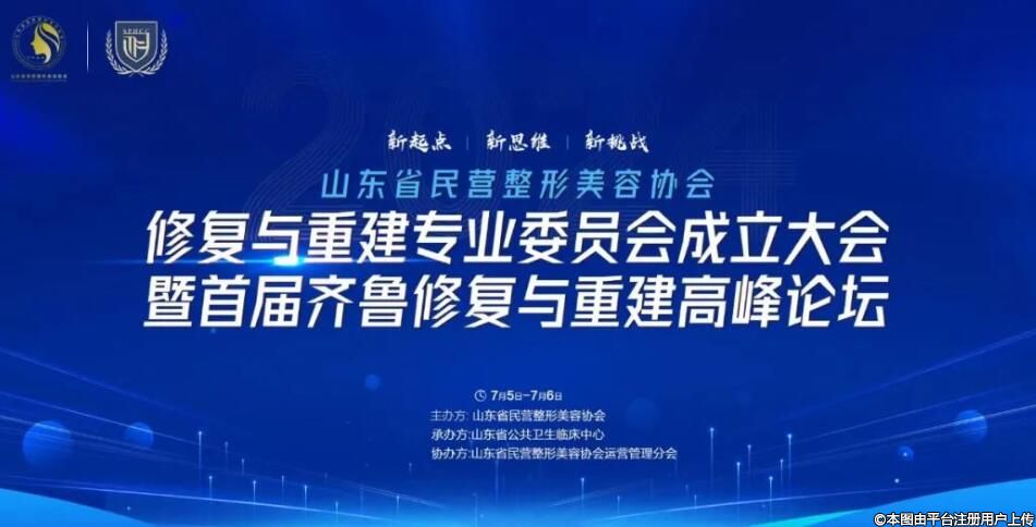 7月5-6日,山東省民營(yíng)整形美容協(xié)會(huì)修復(fù)與重建專(zhuān)業(yè)委員會(huì)成立大會(huì)暨首屆齊魯修復(fù)與重建高峰論壇在濟(jì)南成功舉辦。本次會(huì)議的成功舉辦,得到了山東大學(xué)附屬公共衛(wèi)生臨床中心、山東省民營(yíng)整形美容協(xié)會(huì)運(yùn)營(yíng)管理分會(huì)、濟(jì)南深邁科技有限公司、深圳齊康醫(yī)療器械有限公司、穩(wěn)得希林(杭州)生物科技有限公司、山東慈德醫(yī)藥有限公司、濟(jì)南護(hù)理職業(yè)學(xué)院、濟(jì)南槐蔭俏嘉麗醫(yī)療美容門(mén)診部等單位的支持。