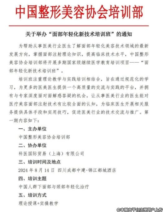 關(guān)于舉辦“面部年輕化新技術(shù)培訓(xùn)班”的通知