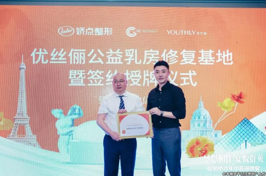 此外,昆明嬌點整形在本次活動中正式啟動了“乳你所愿·公益援助”行動,攜手“法國優(yōu)絲儷粉紅絲帶公益乳房”,共同致力于服務(wù)有乳房方面困擾的女性。法國優(yōu)絲儷乳房植入體廠家代表、優(yōu)絲儷云南總經(jīng)銷、云南普碩生物科技有限公司總經(jīng)理尚燁向昆明嬌點授予了“優(yōu)絲儷粉公益乳房修復(fù)基地”的榮譽牌匾。