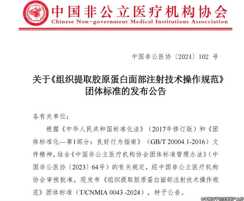 2024年7月6日上午,中國非公立醫(yī)療機構(gòu)協(xié)會整形與美容專委會(以下簡稱專委會)2024年度學(xué)術(shù)年會在武漢光谷會展中心成功召開。大會由專委會和中國整形美容協(xié)會醫(yī)美線技術(shù)分會(以下簡稱線分會)共同舉辦。在本次年會開幕式上,《組織提取膠原蛋白面部注射技術(shù)操作規(guī)范》團(tuán)體標(biāo)準(zhǔn)正式發(fā)布。