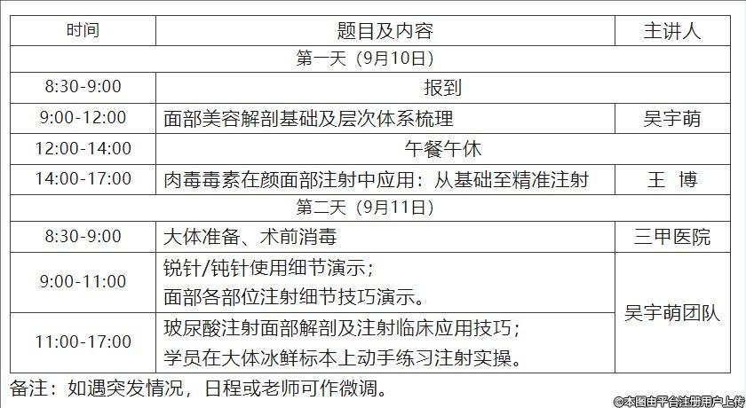 應(yīng)廣大學(xué)員要求,中國(guó)整形美容協(xié)會(huì)牙頜顏面分會(huì),定于2024年9月10日-11日,在北京舉辦《微整形醫(yī)美注射大體冰鮮標(biāo)本實(shí)操精英班》。本次培訓(xùn)邀請(qǐng)?jiān)\娍傖t(yī)院激光美容中心主任王博以及邏輯解剖創(chuàng)始人吳宇萌擔(dān)當(dāng)主講。為了提高課程實(shí)操實(shí)戰(zhàn)性,使學(xué)員學(xué)習(xí)之后就能夠上手開(kāi)展注射操作,本次培訓(xùn)特別設(shè)置了醫(yī)美注射大體冰鮮標(biāo)本實(shí)操課,相信您會(huì)從這場(chǎng)醫(yī)美注射超強(qiáng)實(shí)操課中收獲學(xué)以致用的回報(bào)!