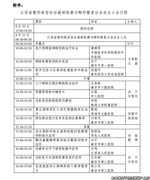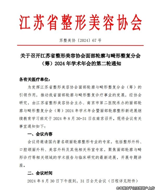 江蘇省整形美容協(xié)會(huì)面部輪廓與畸形整復(fù)分會(huì)第二輪通知