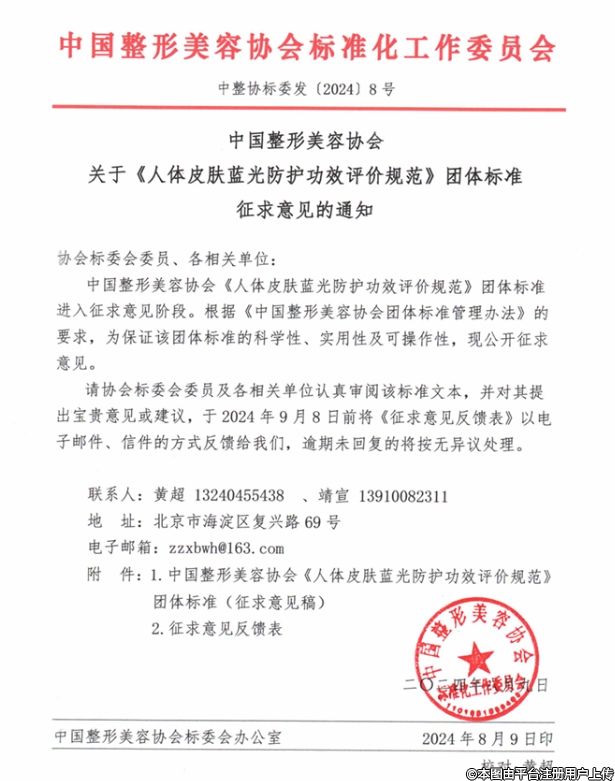 中國整形美容協(xié)會《人體皮膚藍(lán)光防護(hù)功效評價(jià)規(guī)范》團(tuán)體標(biāo)準(zhǔn)進(jìn)入征求意見階段。根據(jù)《中國整形美容協(xié)會團(tuán)體標(biāo)準(zhǔn)管理辦法》的要求,為保證該團(tuán)體標(biāo)準(zhǔn)的科學(xué)性、實(shí)用性及可操作性,現(xiàn)公開征求意見。