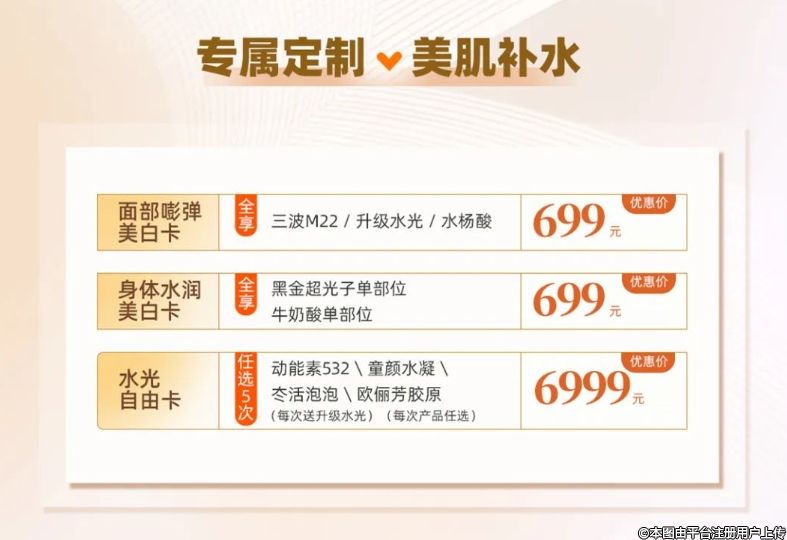 面部嘭彈美白、身體水潤(rùn)美白、水光自由卡