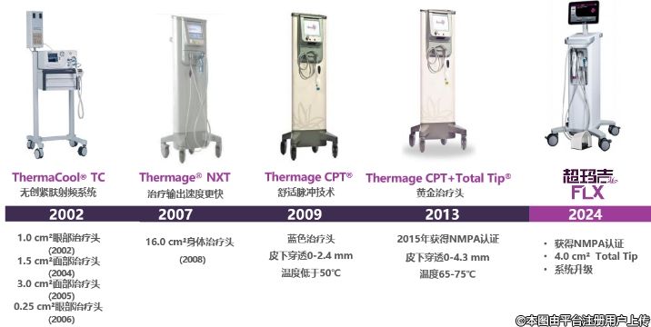 歷經(jīng)5次技術(shù)升級,獲得NMPA認(rèn)證,可以說技術(shù)非常成熟了。因?yàn)樯虡?biāo)注冊的問題,今年4月索塔正式宣布Thermage FLX中文名為“超瑪吉”煥新上市。