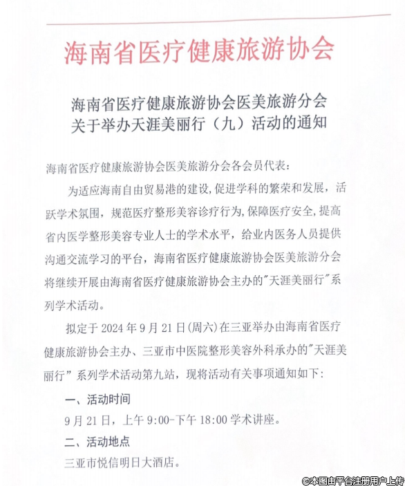 海南省醫(yī)療健康旅游協(xié)會(huì)醫(yī)美旅游分會(huì)關(guān)于舉辦天涯美麗行(九)活動(dòng)的通知