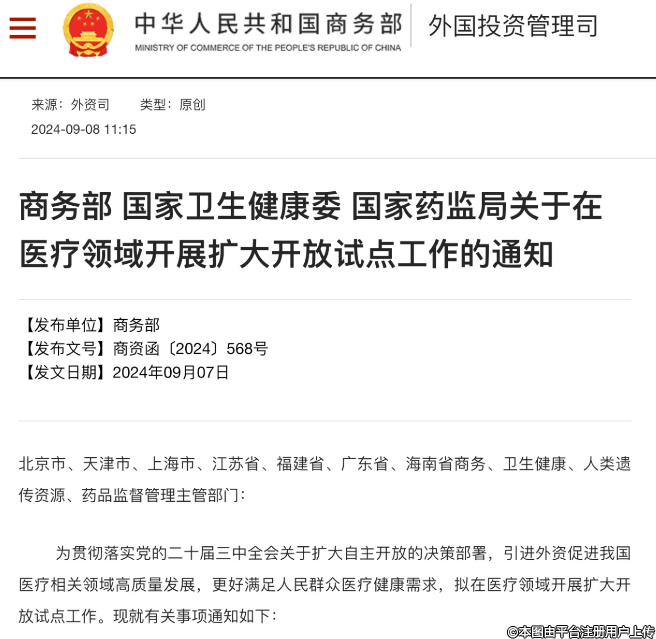 三部門發(fā)布:《關(guān)于在醫(yī)療領(lǐng)域開展擴(kuò)大開放試點(diǎn)工作的通知》