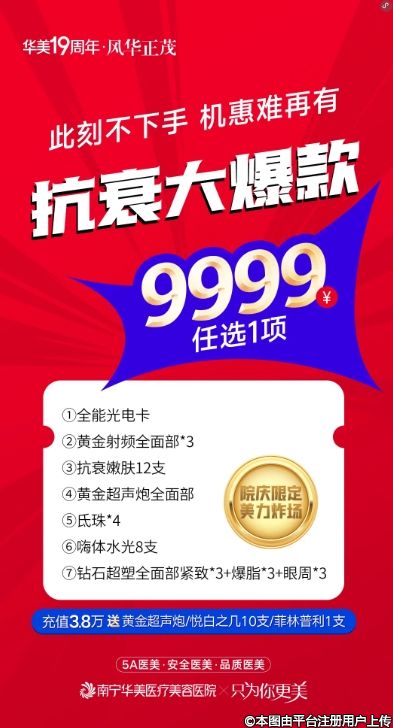 周年慶才有的機惠 南寧華美抗衰大爆款9999元任選一項