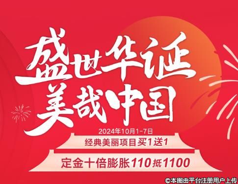 盛世華誕,美哉中國(guó),烏魯木齊華美給大家送美容福利啦,在國(guó)慶期間,經(jīng)典美麗項(xiàng)目買一送一,定金十倍膨脹,110元抵1100元,超值福利,大家還在等什么呢?