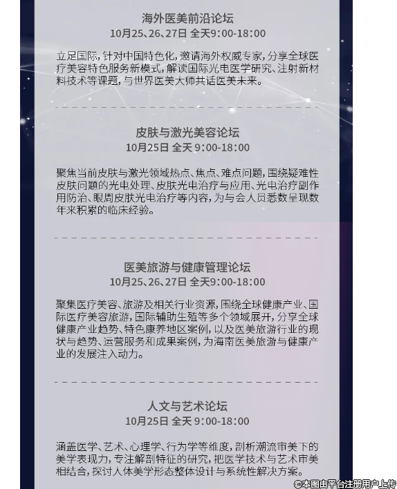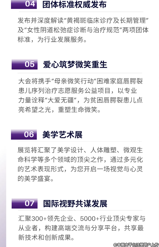 大會(huì)將把握行業(yè)發(fā)展趨勢(shì),秉承“政策牽引,行業(yè)帶動(dòng)”為發(fā)起目標(biāo)匯聚全球資源,重塑醫(yī)美行業(yè)標(biāo)桿,打造海南醫(yī)美產(chǎn)業(yè)發(fā)展新范式,推進(jìn)海南醫(yī)美產(chǎn)業(yè)特色化、高端化、國(guó)際化。大會(huì)將邀請(qǐng)來自世界各地的醫(yī)美知名企業(yè)機(jī)構(gòu)、專家學(xué)者分享演講、分享最新科研技術(shù)和創(chuàng)新成果。