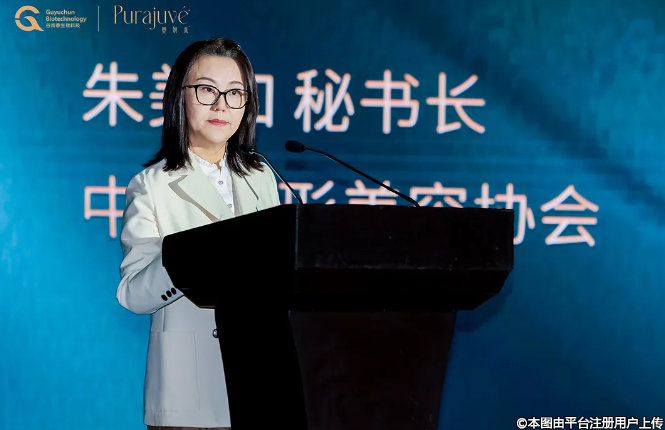 會(huì)議分享伊始,中國(guó)整形美容協(xié)會(huì)朱美如秘書長(zhǎng),率先上臺(tái)進(jìn)行分享。她選擇的話題聚焦于“醫(yī)療美容行業(yè)材料合規(guī)與材料發(fā)展”。首先,朱美如女士對(duì)塑妍真品牌的發(fā)布儀式表達(dá)了美好的祝愿。