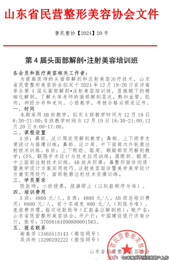 第4屆頭面部解剖•注射美容培訓(xùn)班的通知
