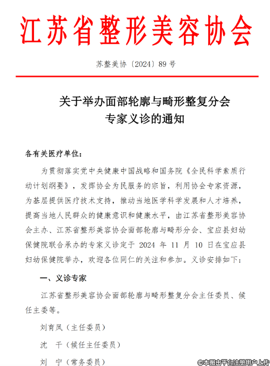 關(guān)于舉辦面部輪廓與畸形整復(fù)分會(huì)專(zhuān)家義診的通知