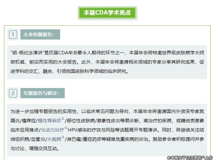 6)管理賦能:關(guān)注皮膚科室管理建設(shè)。為提高皮膚性病科領(lǐng)域的醫(yī)療質(zhì)量和科室管理能力,新增“綜合醫(yī)院皮膚科病房管理”“醫(yī)保付費的額度DRG/DIP、CMI指數(shù)”以及“皮膚性病質(zhì)量控制中心和學(xué)科發(fā)展之間的關(guān)系”“電子病歷”系統(tǒng)等相關(guān)內(nèi)容。本次年會將以臨床實際問題為導(dǎo)向,以皮膚科醫(yī)生的需求為目標,在傳承中創(chuàng)新,在創(chuàng)新中提升,竭力讓所有參會代表收獲良多,不虛此行。