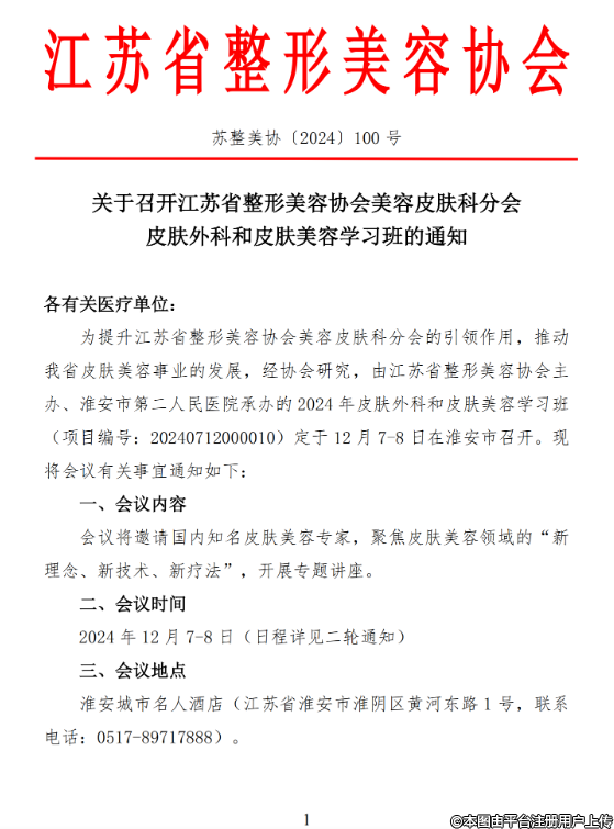 關(guān)于召開江蘇省整形美容協(xié)會美容皮膚科分會皮膚外科和皮膚美容學(xué)習(xí)班的通知