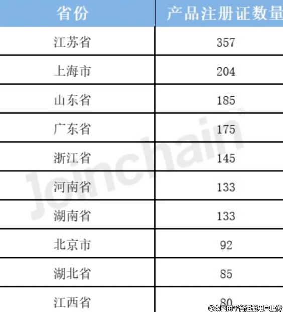 江蘇的醫(yī)美上游企業(yè)數(shù)量遠(yuǎn)超其他省市,有357家。同時(shí),我們還有一個(gè)疑問,為什么打出“醫(yī)美之都”旗號(hào)的四川(成都)、廣東(深圳)排名并不靠前?