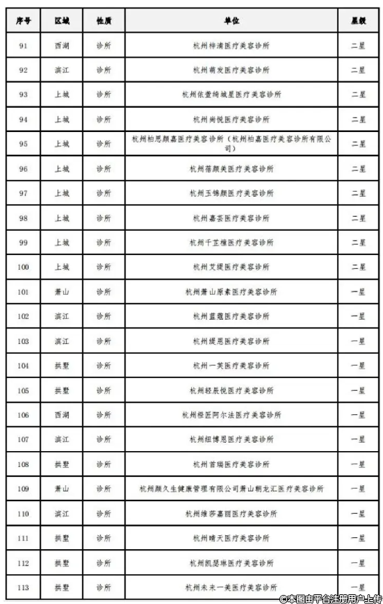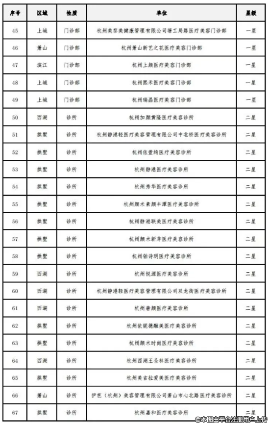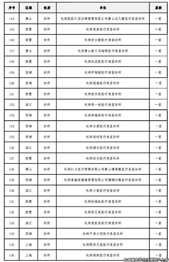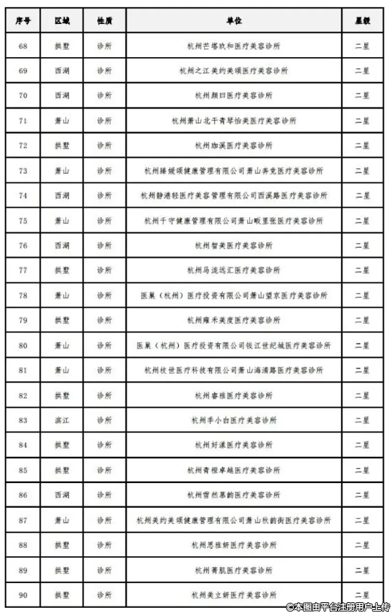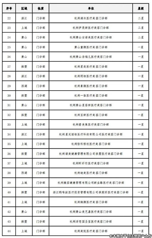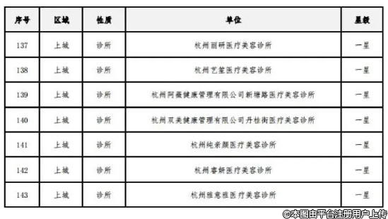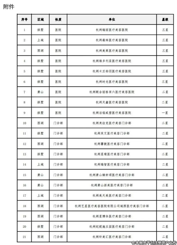附件:《杭州市醫(yī)療美容機構規(guī)范化星級評價結果》