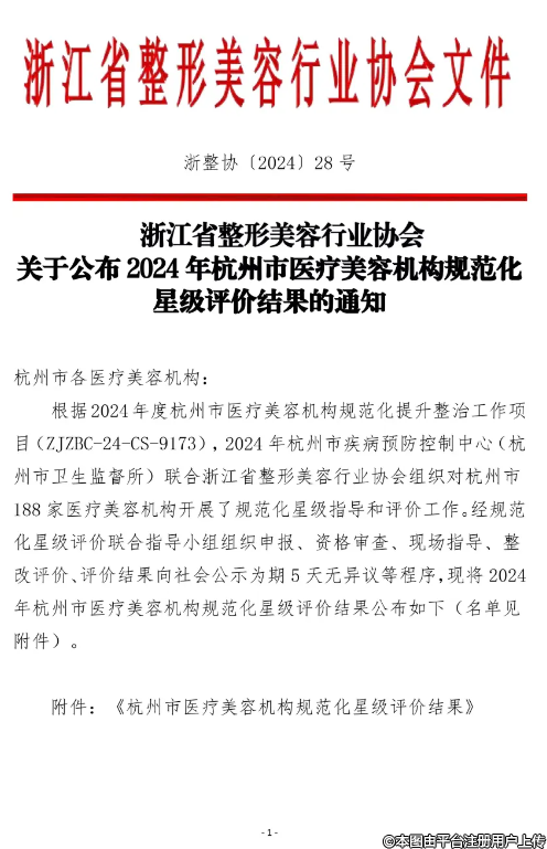 關于公布2024年杭州市醫(yī)療美容機構規(guī)范化星級評價結果的通知