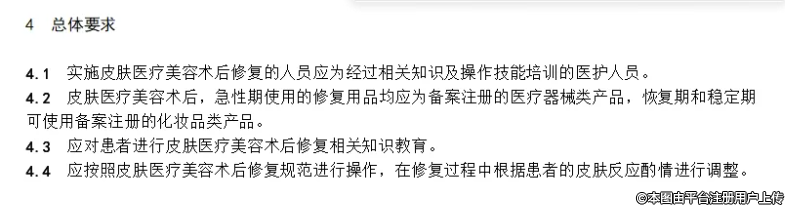 規(guī)范中明確規(guī)定了皮膚醫(yī)療美容術(shù)后修復(fù)的總體要求、適用范圍和禁忌、修復(fù)階段及用品、修復(fù)評(píng)估、操作規(guī)范以及并發(fā)癥處理等多方面內(nèi)容。尤其強(qiáng)調(diào)了術(shù)后修復(fù)的關(guān)鍵重要性,并提出了一系列核心原則。