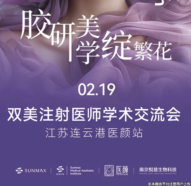 2025年2月19日,由北京享贊國際貿(mào)易有限公司主辦,江蘇連云港醫(yī)顏醫(yī)療美容承辦,南京悅慈生物科技有限公司協(xié)辦的《雙美膠原蛋白·注射醫(yī)師學術(shù)交流會——江蘇連云港醫(yī)顏站》,即將舉辦!