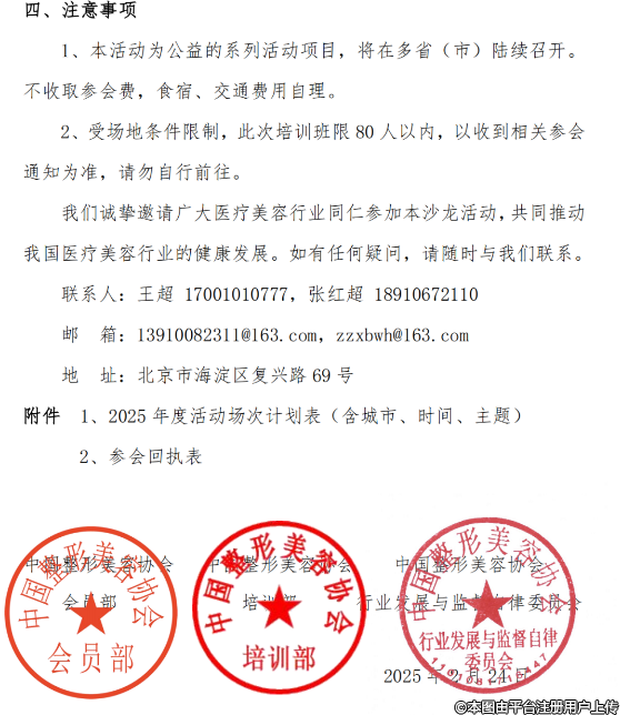 我們誠摯邀請廣大醫(yī)療美容行業(yè)同仁參加本沙龍活動,共同推動我國醫(yī)療美容行業(yè)的健康發(fā)展。如有任何疑問,請隨時與我們聯(lián)系。
