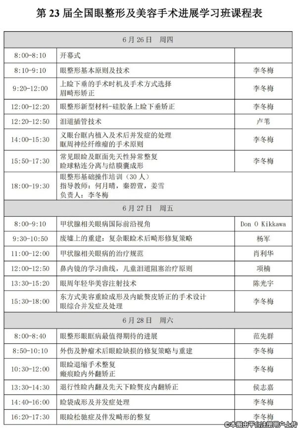 第 23 屆全國眼整形及美容手術(shù)進(jìn)展學(xué)習(xí)班課程表