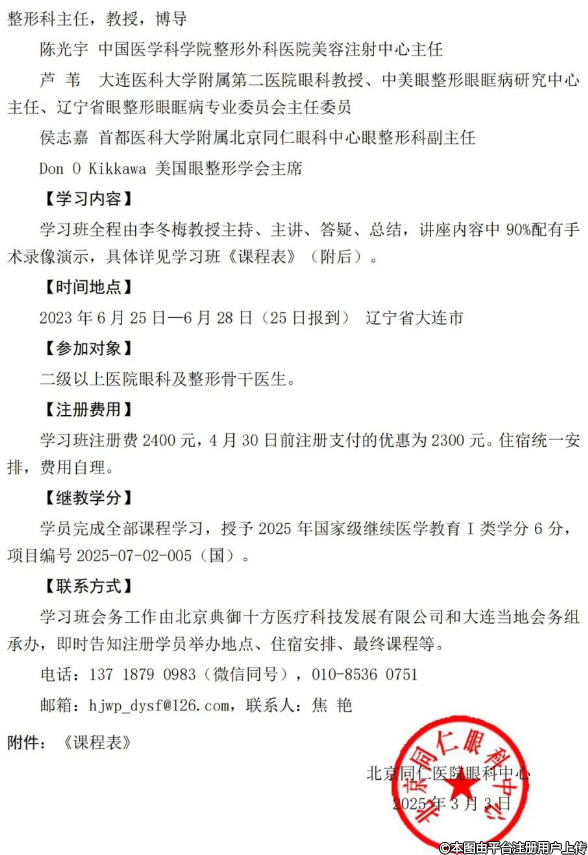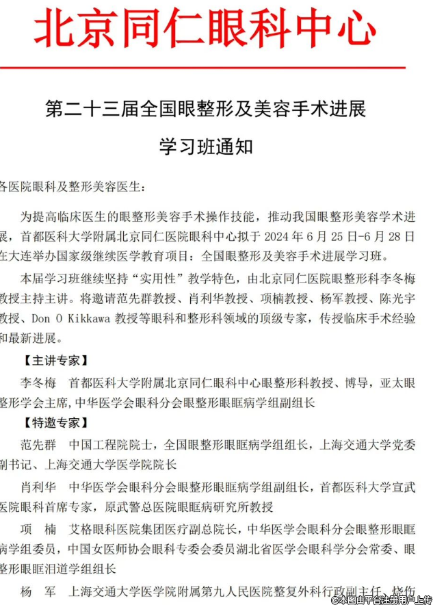 第二十三屆全國眼整形及美容手術(shù)進(jìn)展 學(xué)習(xí)班通知(附課程表)