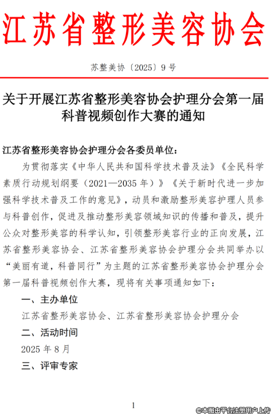 關(guān)于開展江蘇省整形美容協(xié)會(huì)護(hù)理分會(huì)第一屆科普視頻創(chuàng)作大賽的通知