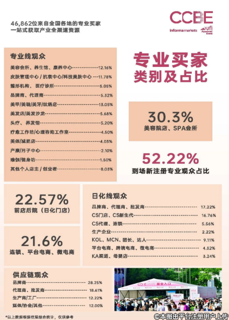 作為UFI成員,CCBE成都美博會是中國中西部地區(qū)規(guī)模最大、影響力最強的美容化妝品展。展會涵蓋專業(yè)線、日化線、醫(yī)學美容、專業(yè)美發(fā)、國際品牌五大領域,匯聚4500+優(yōu)質品牌,為海內外企業(yè)提供開拓中國西部市場的絕佳平臺。在這里,您可以找到美業(yè)全產業(yè)鏈各細分領域的優(yōu)質產品、項目與技術,還能與行業(yè)大咖面對面交流,獲取第一手市場信息。