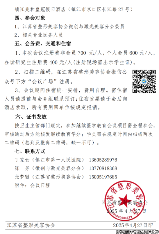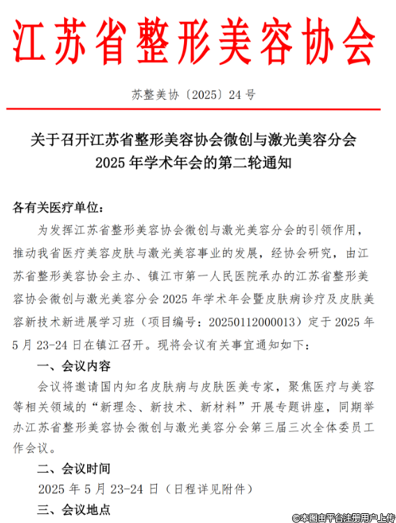 關(guān)于召開江蘇省整形美容協(xié)會微創(chuàng)與激光美容分會2025 年學(xué)術(shù)年會的第二輪通知