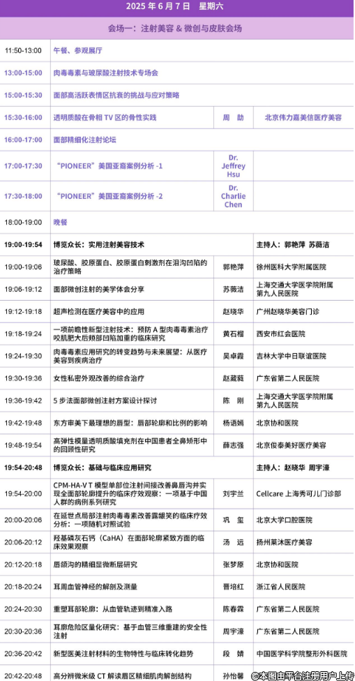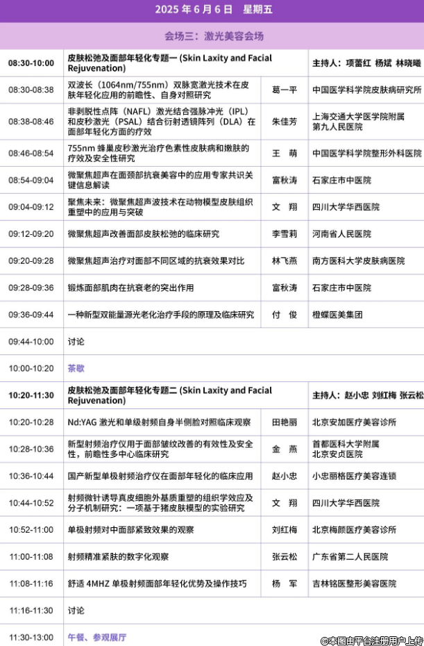 本屆大會將以“創(chuàng)新引領(lǐng)、技術(shù)賦能”為主題,以當(dāng)前醫(yī)美市場為背景,設(shè)置豐富的學(xué)術(shù)報告、技術(shù)展示、專題論壇等內(nèi)容,為行業(yè)同仁提供一個全面的、多維度的、高水平的學(xué)術(shù)交流平臺。會議的內(nèi)容涵蓋微創(chuàng)技術(shù)的最新進展、臨床經(jīng)驗分享、專家共識等多個方面,旨在通過思想的碰撞與經(jīng)驗的分享,為微創(chuàng)醫(yī)學(xué)美容的可持續(xù)發(fā)展提供有力的支撐。在為期三天的大會期間,您將有機會聆聽行業(yè)知名專家的精彩報告,參與多個主題論壇的深入交流,并與同行們共同探討行業(yè)面臨的新機遇與新挑戰(zhàn)。
