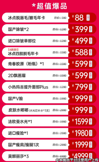 一些熱門的醫(yī)美項目都給到了福利價