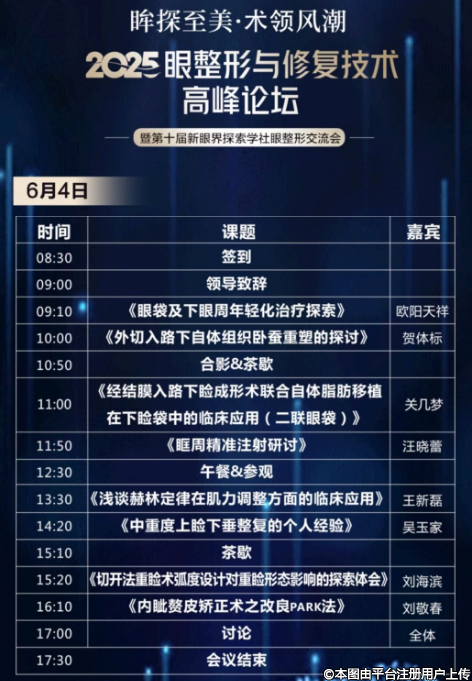 會議通知:2025眼整形與修復(fù)技術(shù)高峰論壇暨第十屆新眼界探索學(xué)社眼整形交流會