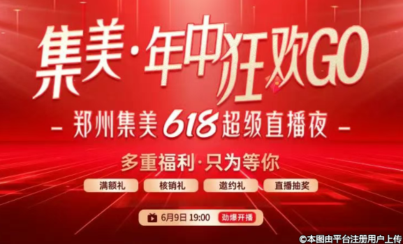 6月9日晚 鄭州集美618超級直播夜 年中狂歡GO強勢來襲