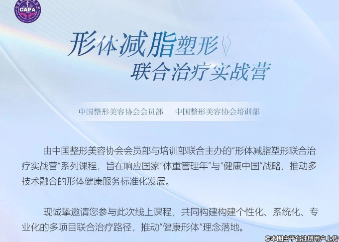 由中國(guó)整形美容協(xié)會(huì)會(huì)員部與培訓(xùn)部聯(lián)合主辦的“形體減脂塑形聯(lián)合治療實(shí)戰(zhàn)營(yíng)“系列課程,旨在響應(yīng)國(guó)家“體重管理年”與“健康中國(guó)”戰(zhàn)略,推動(dòng)多技術(shù)融合的形體健康服務(wù)標(biāo)準(zhǔn)化發(fā)展。