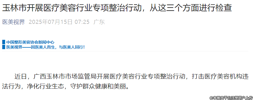 玉林市開展醫(yī)療美容行業(yè)專項整治行動,從這三個方面進行檢查