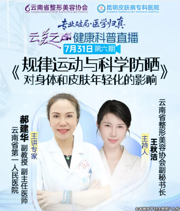 “云美之聲”第六期7月31日開(kāi)播!云南省第一人民醫(yī)院郝建華教授解讀「運(yùn)動(dòng)+防曬」對(duì)皮膚年輕化的影響,鎖定直播get干貨