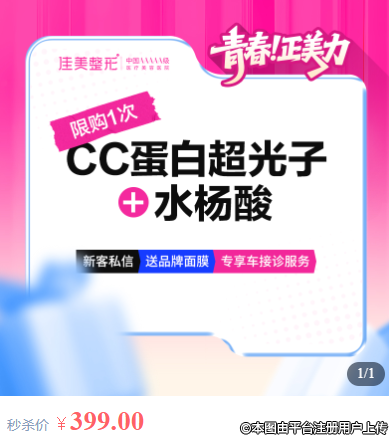 南昌佳美超值優(yōu)惠,讓你青春正美力,限購一次,CC蛋白超光子+水楊酸,好肌膚帶回家。