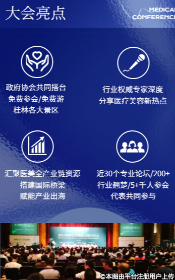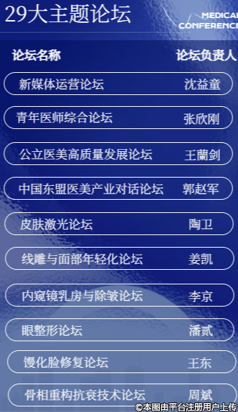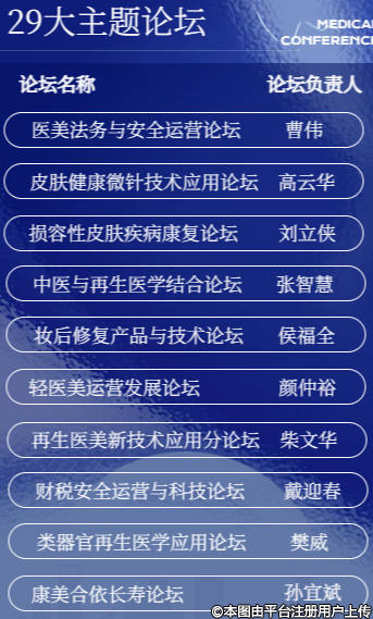本次大會將設(shè)30個分論壇,300余場主題演講,涵蓋學(xué)術(shù)交流、技術(shù)展示、產(chǎn)業(yè)對接等多個板塊,各學(xué)科專家匯集,旨在搭建一個國際化、公益化、專業(yè)化、規(guī)范化、產(chǎn)業(yè)化全方位醫(yī)美交流平臺。