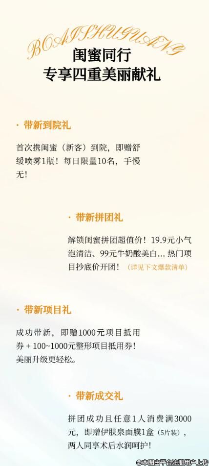 寶子們!變美這件事兒,怎么能少了閨蜜相伴?深圳博愛曙光帶著超燃福利來啦!“「友」福同享”活動閃亮登場,快喊上你的神仙閨蜜一起組團,讓顏值直接開掛,現(xiàn)在限時拼團,變美項目低至19.9元,沖就完事兒!