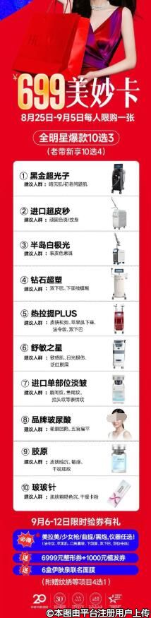 以上項目10選3,僅需699元??!搶購時間截止至9月5日