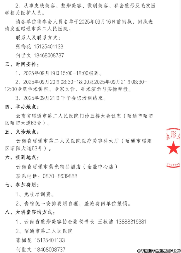 請各單位將參會人員名單于2025年09月16日前回執(zhí),回執(zhí)表請發(fā)至昭通市第二人民醫(yī)院。