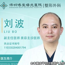 #劉波就職醫(yī)院: 深圳博愛曙光醫(yī)療美容職稱職務(wù): 職業(yè)醫(yī)師擅長(zhǎng)項(xiàng)目: 鼻部綜合整形、ACR脂肪移植、復(fù)合隆胸、眼部整形